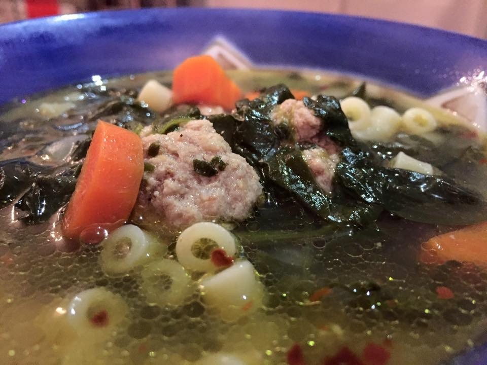 This recipe is based on http://www.foodnetwork.com/recipes/rachael-ray/mini-meatball-soup-recipe.html, with modifications. We did not make the grilled cheese sandwiches in the recipe, either. (Mar. 2015)