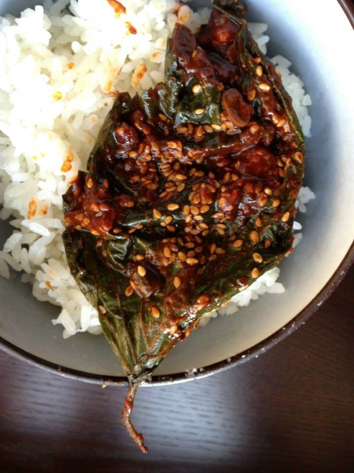 the leaves until finished, then let sit covered at room temperature overnight. Refrigerate until ready to eat. Serve with short grain rice. This recipe is from Quick & Easy Korean Cooking for Everyone
