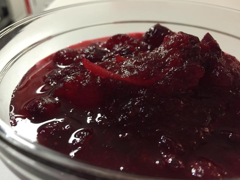 We made this following Ocean Spray’s recipe: http://www.oceanspray.com/Recipes/Corporate/Sauces,-Sides-Salads/Homemade-Whole-Berry-Cranberry-Sauce.aspx. We added the zest of an orange and 1-2 inch of fresh ginger (half microplaned and half julienned). Thank you to Waimar for inspiring us to try this recipe. We will enjoy this with roast chicken this evening. (Dec. 2014)