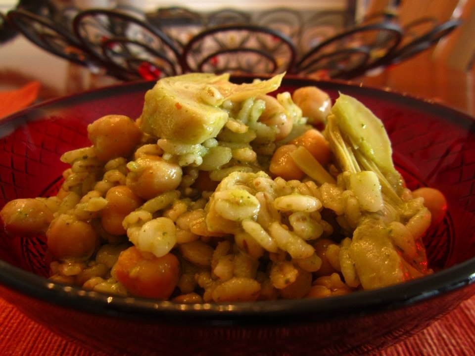 We first tried this recipe in 2007 when our friend Sandhya served it at a party. The recipe is here: https://www.food.com/recipe/barley-pilaf-with-chickpeas-and-artichoke-hearts-301799