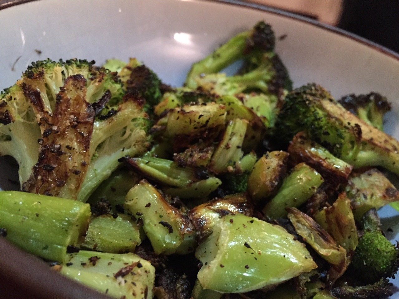 Amazingly, we made this from frozen broccoli. The recipe is here: http://lifeonthefoodchain.blogspot.com/2013/05/yes-you-can-roast-frozen-vegetables-yes.html?m=1“>http://lifeonthefoodchain.blogspot.com/2013/05/yes-you-can-roast-frozen-vegetables-yes.html?m=1 (May 2015)
