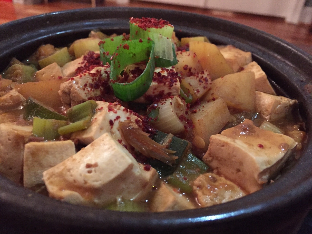 Korean soybean paste stew with tofu, shrimp, and potato (doen jang) September 27, 2015August 14, 2022 Format Post format: Image Recipe from Maangchi: http://www.maangchi.com/recipe/tofu-stew-doenjang-chigae (Sept. 2015) Share this: Click to share on X (Opens in new window) X Click to share on Facebook (Opens in new window) Facebook Click to print (Opens in new window) Print Click to email a link to a friend (Opens in new window) Email Click to share on Tumblr (Opens in new window) Tumblr Click to share on Pinterest (Opens in new window) Pinterest Click to share on Telegram (Opens in new window) Telegram Click to share on WhatsApp (Opens in new window) WhatsApp Like Loading...
