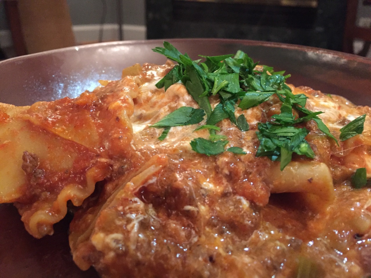 This marked my first time using a pressure cooker to make lasagna, both the sauce and cooking the lasagna sheets. The recipe is from the Hip Pressure Cooking cookbook by Laura Pazzaglia. Here is a similar recipe she posted on her Hip Pressure Cooking blog: http://www.hippressurecooking.com/pressure-cooker-pasta-casserole-a-cheesy-meaty-mess-mezzemaniche-pasticciate/. The sloppy lasagna was very tasty, but I burnt the sauce a bit because I couldn’t accurately gauge the amount of pressure. I may need a more sophisticated pressure cooker – one with a high and low pressure setting – to make her recipes. (Jan. 2016)
