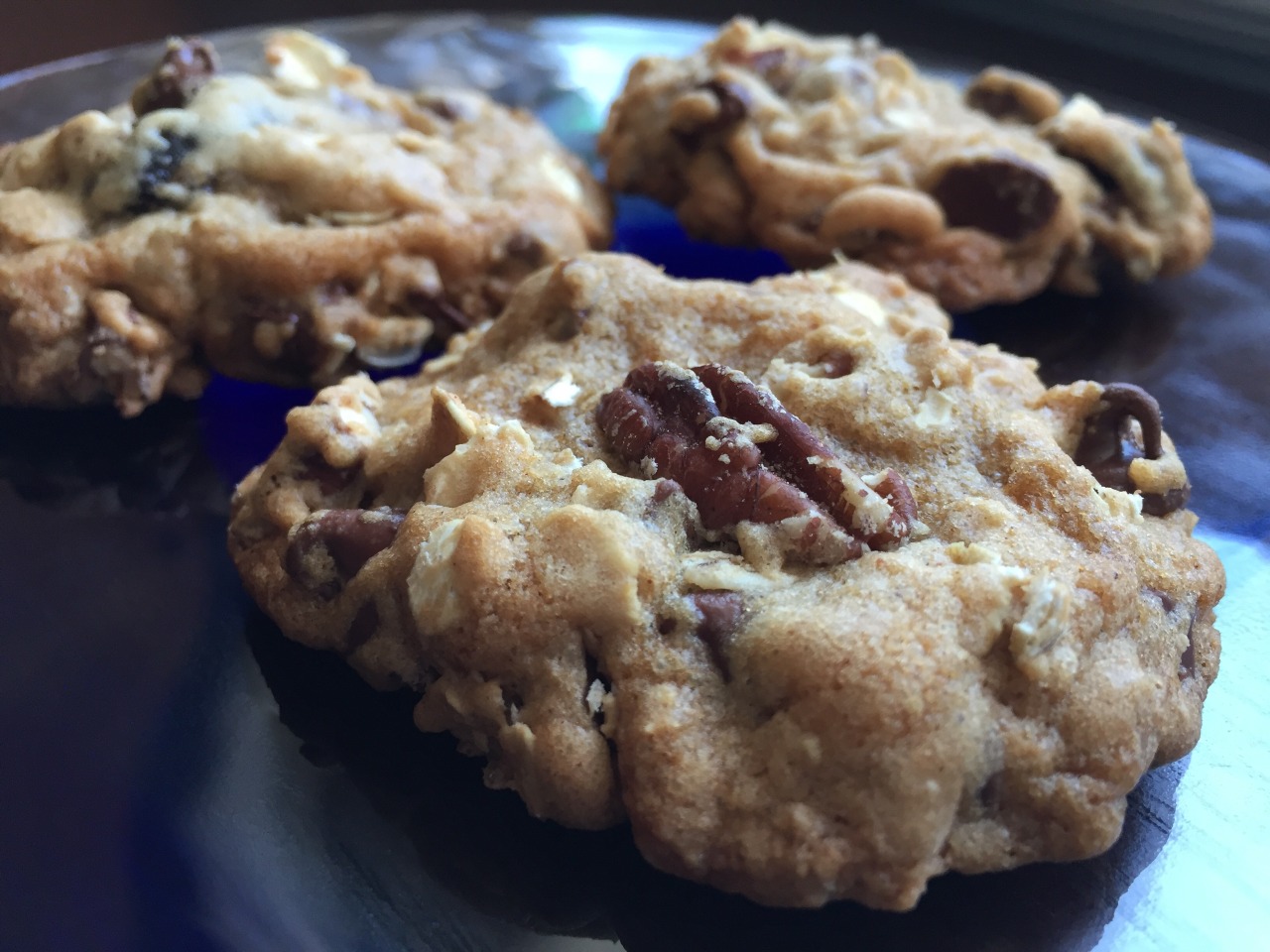 On this snow day, we decided to try out this Smitten Kitchen recipe: http://smittenkitchen.com/blog/2007/11/oatmeal-chocolate-chip-and-pecan-cookies. We ran out of pecans, so we substituted half of the pecans with dried cherries. We also used rolled oats instead of quick-cook oats. These cookies ended up being overly sweet (probably due to the 12 oz of chocolate) and quite soft. (Jan. 2016
