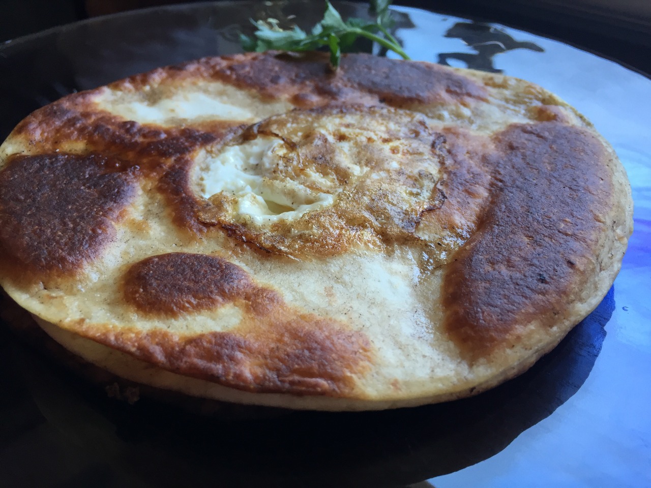 We tried this recipe from the Pioneer Woman, except that we used leftover flour (instead of corn) tortillas: http://thepioneerwoman.com/cooking/huevo-in-the-hole/. Very tasty, but be warned that the tortillas can burn easily in butter, so keep your burner on medium (or lower) heat. (Apr. 2016)