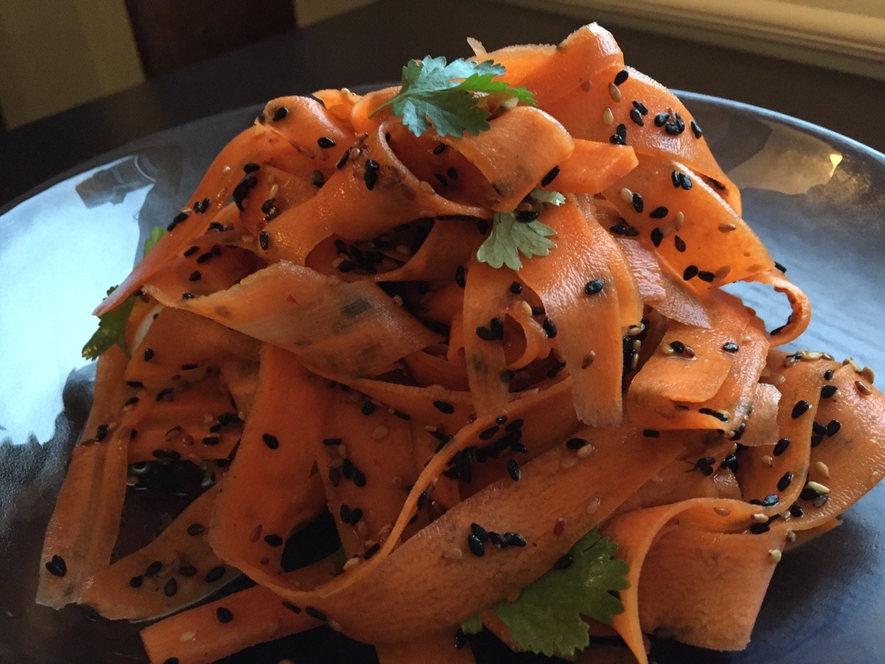 We tried this recipe from The New Persian Kitchen by Louisa Shafia. Peeling 1 ½ lbs carrots into ribbons was time-consuming, but the marinade was quick and easy. We found it a little too spicy, so the next time we may reduce the crushed red pepper from 1 tsp to ½ tsp. The recipe is available online here: http://www.popsugar.com/food/Spicy-Sesame-Carrot-Salad-30421461 (Apr. 2016)