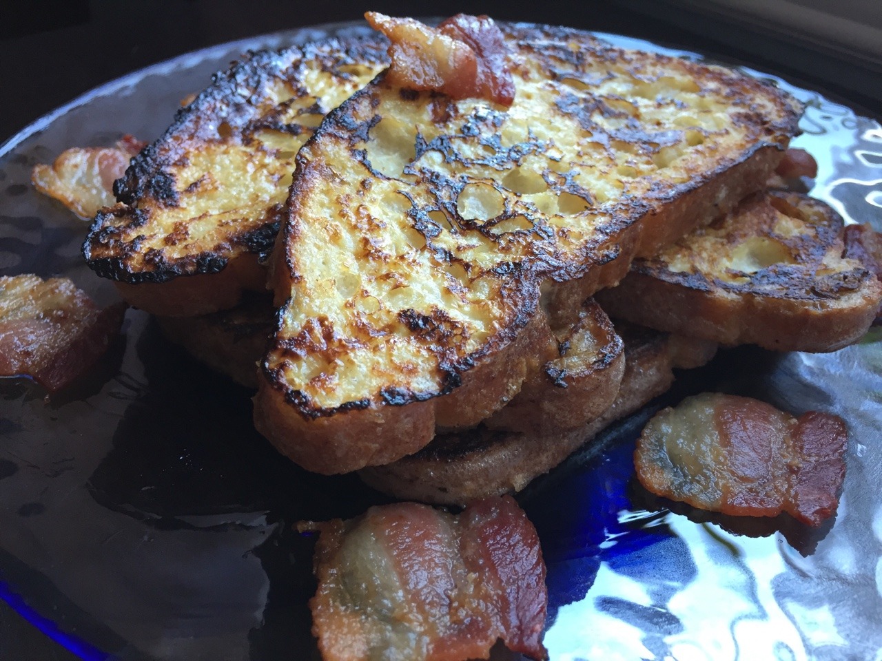 Note 3: In case you have only fresh bread (which would result in soggy French toast), you can dry out the slices by baking them on a rack at 300 for about 8-10 mins. This will yield a better French toast. We loosely followed some guidance from Cooks Illustrated: https://food-hacks.wonderhowto.com/how-to/12-food-hacks-for-perfect-french-toast-every-time-0157474/ (May 2018)