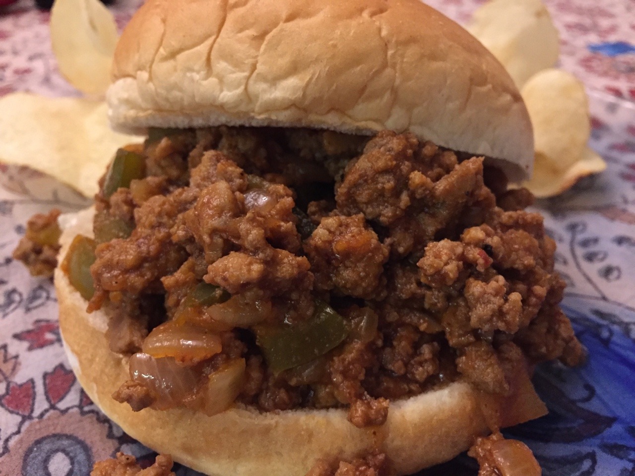 We tried this Pioneer Woman recipe: http://thepioneerwoman.com/cooking/sloppy-joes/ Our modifications: first, in lieu of 1 ½ lb minced beef, we used 1 1/3 lb minced turkey and 1 lb minced beef. Second, we used one chopped, seeded jalapeño in addition to the bell pepper. We served the Sloppy Joes with Utz potato chips. This dish reminds me of childhood. (Mar. 2017)