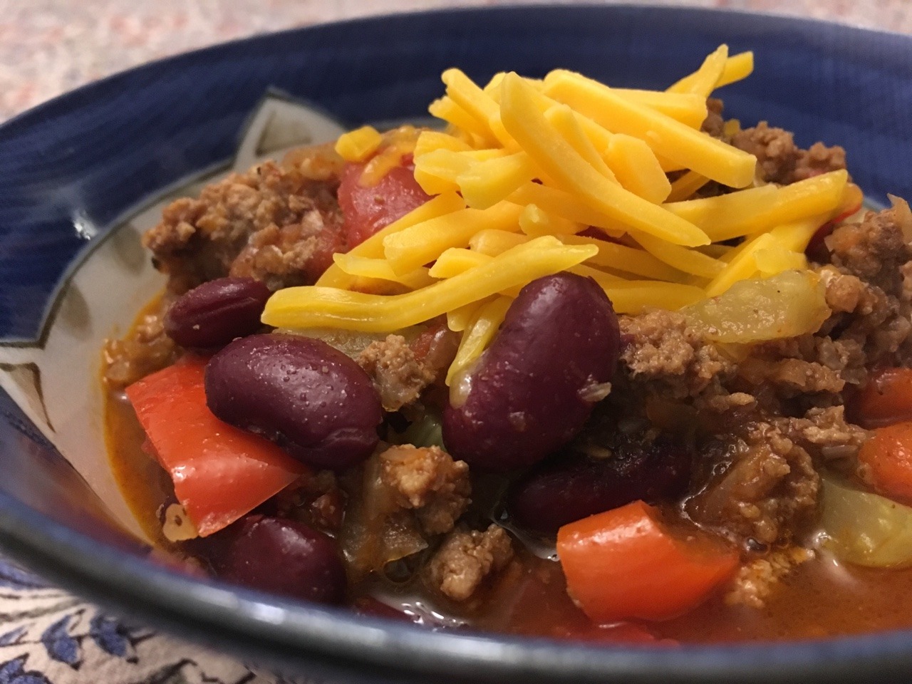 We tried this recipe: https://cooking.nytimes.com/recipes/7985-turkey-chili We made the following minor modifications: first, we used 1 lb minced bison and 1 1/3 lb minced turkey (a mix of white and dark). Second, we used 2 ½ Tbsp chili powder and 1 ½ tsp smoked chipotle pepper powder. Third, for the canned tomatoes, we substituted half of the amount with a 14.5 oz can of whole peeked tomatoes, which we squeezed into pieces by hand (this provided more textural contrasts). Finally, to reduce sodium, we used no-salt versions of canned tomatoes, canned kidney beans, and chicken broth. (Mar. 2018)