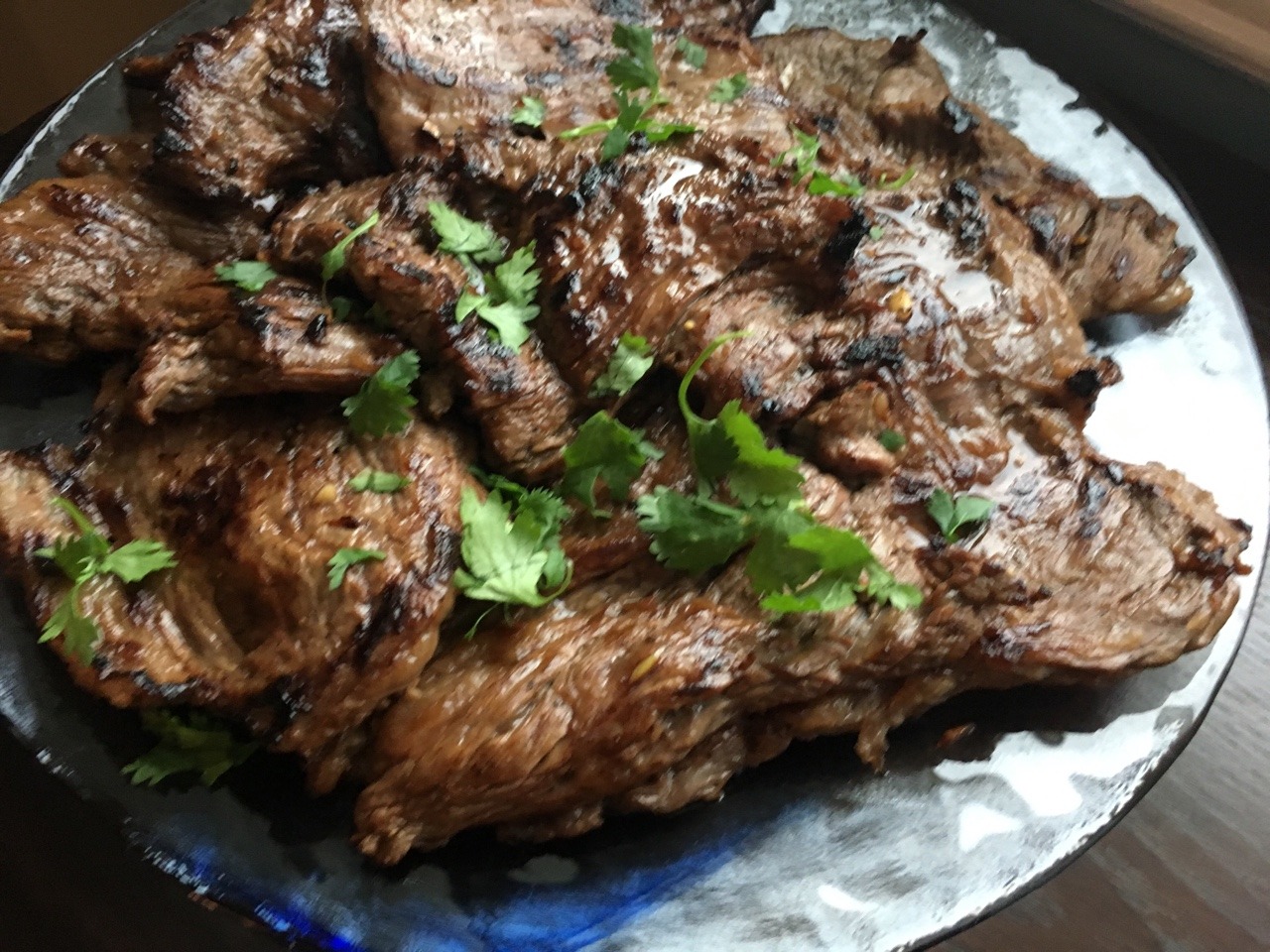 We tried this recipe: https://cooking.nytimes.com/recipes/3505-fajitas-meat-filled-tortillas-with-hot-sauce It is harder to execute than expected: the instructions call for halving the skirt steak width, which we did with a boning knife. We tried oven-broiling the individual slabs of skirt steak, but they wouldn’t brown in the oven. So we resorted to a hard sear on medium-high heat in a nonstick omelet pan. We served the skirt steak with chipotle sauce (recipe here: http://piglettedc.tumblr.com/post/176174597181/chipotle-chili-sauce-we-tried-this-recipe), warmed tortillas, guacamole, and pinto bean stew (http://piglettedc.tumblr.com/post/176174081786/mexican-pinto-bean-stew-with-fire-roasted). (July 2018)