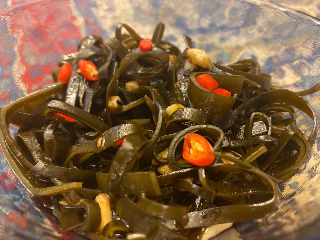 I tried this recipe to repurpose kombu seaweed that we had simmered to flavor a vegetarian Korean soup base: https://omnivorescookbook.com/chinese-seaweed-salad/ Our modifications: for the hot chili oil, we used 1.5 Tbsp corn oil and 1/2 tsp Sichuan peppercorns (which we ground by hand). We garnished with part of a chopped Thai bird’s eye chili. This was very tasty. (Aug. 2022)