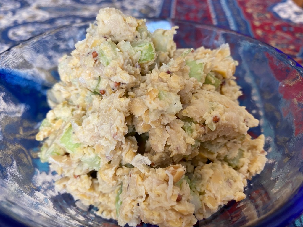 This is a vegetarian, chick pea-based dish reminiscent of tuna salad. We tried this recipe: https://www.liveeatlearn.com/chickpea-tuna-salad/.