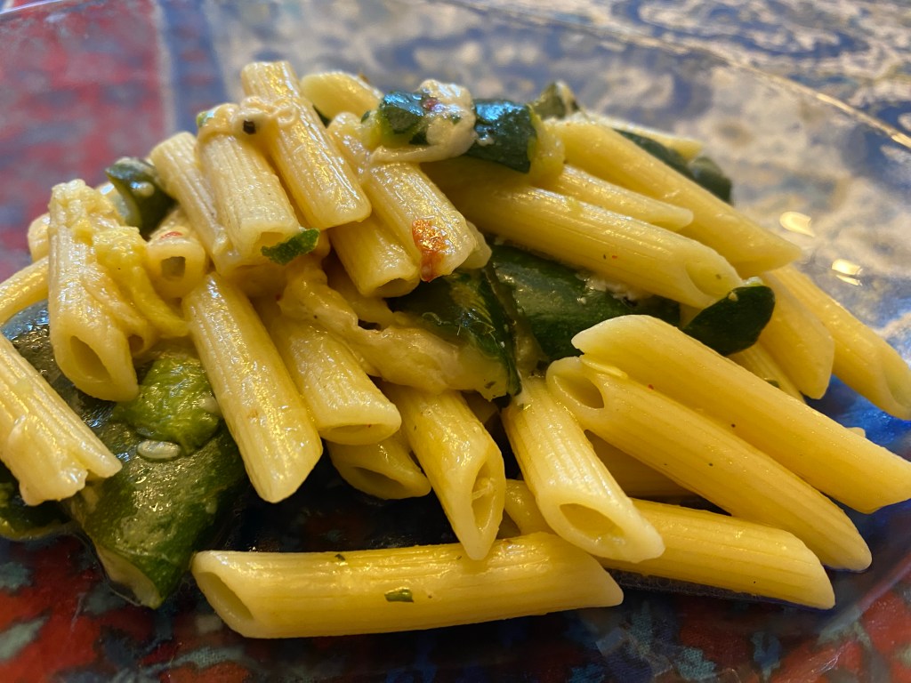 We unexpectedly had an abundance of zucchini, including 4 smaller ones. We tried this recipe: https://www.bostonglobe.com/2022/08/23/lifestyle/recipe-this-unusual-method-cooking-zucchini-with-anchovies-becomes-sauce-pasta/ At the end of cooking, we added lemon juice (about 1/3 lemon) for brightness. This dish was decent, but we prefer a pasta with cauliflower that has a similar flavor base (garlic, anchovy, olive oil). (Jan. 2023)