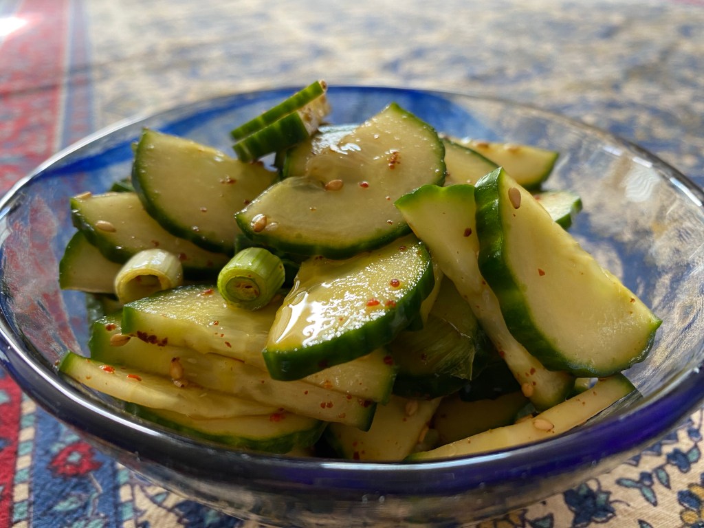 I hosted a Korean lunch for friends today and decided to make this recipe: https://kimchimari.com/korean-cucumber-salad/ It’s surprisingly quick and easy to make. This cucumber salad offers a bright complement to well-seasoned fatty proteins. For today’s lunch, we served this salad with Korean kalbi-style chicken thighs and leafy lettuce (for lettuce wraps). (Mar. 2023)
