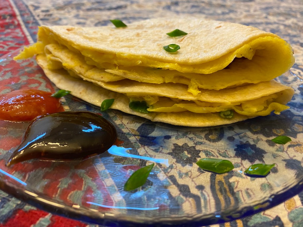 We tried this quick recipe for lunch, and it was delicious, unique, and satisfying: https://cooking.nytimes.com/recipes/1019522-scallion-egg-wrap?smid=ck-recipe-iOS-share