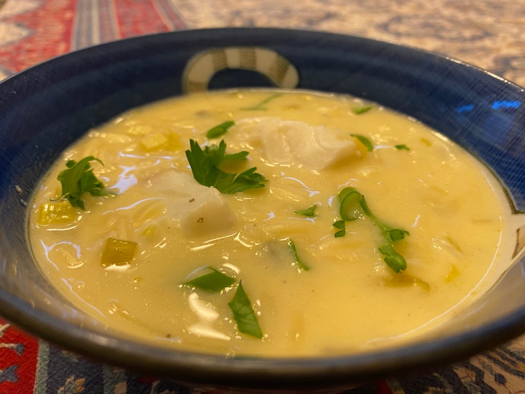 We love avgolemono (Greek lemony chicken soup), and we tried this version using cod and orzo: https://cooking.nytimes.com/recipes/1023805-lemony-fish-and-orzo-soup?smid=ck-recipe-iOS-share To our surprise, the recipe didn’t call for any dill. We found the soup needed more brightness, so we added more lemon juice at the end (we ended up using one entire medium lemon for the entire recipe). We garnished each serving with scallion greens and parsley.