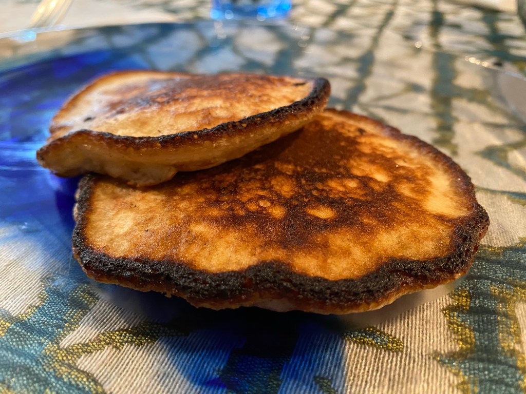 We are on a restricted diet that cuts out whole grains and fresh fruit. So, we gave into our cravings and made this shortcut recipe using a boxed mix (Krusteaz Buttermilk Pancake Mix) and a ripe banana: https://www.loulougirls.com/krusteaz-banana-pancakes/ It was easy and tasty, with a subtle banana taste. (Nov. 2024)