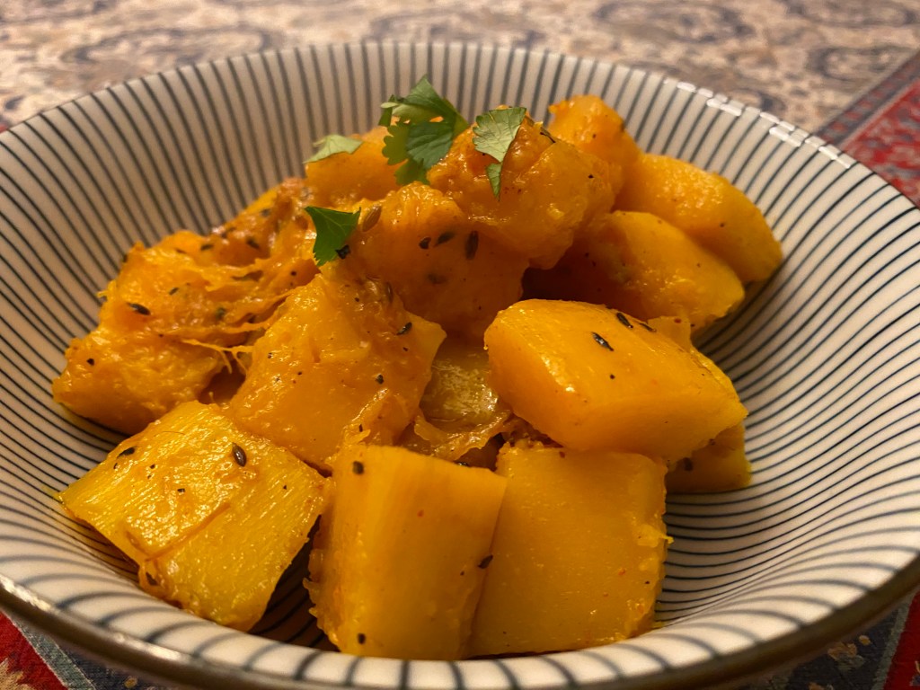We made this recipe for sweet and spicy butternut squash from Shubra Ramineni’s cookbook, Healthy Indian Vegetarian Cooking. Recipe to come (Feb. 2025)