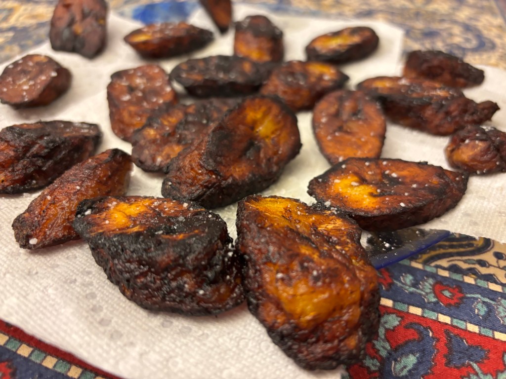 We often bake sweet plantains to make them healthier, but we decided to try this traditional preparation: https://mydominicankitchen.com/fried-sweet-plantain-slices-platanos-maduros-fritos/