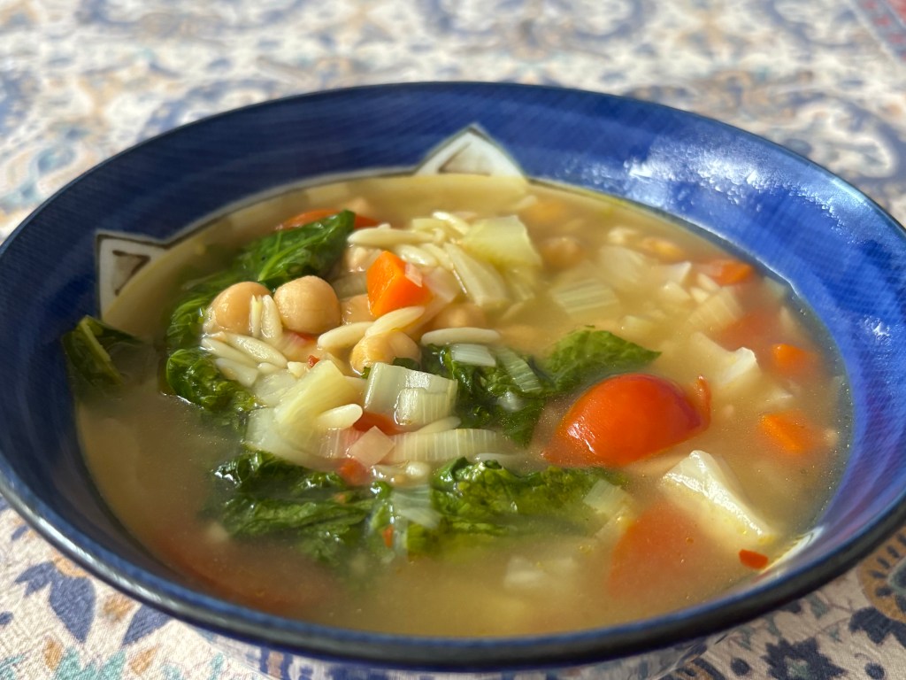On this chilly day, we craved a healthy, warming soup. We tried this recipe: https://cooking.nytimes.com/recipes/1015767-chickpea-stew-with-orzo-and-mustard-greens?smid=ck-recipe-iOS-share. It was very tasty and satisfying.