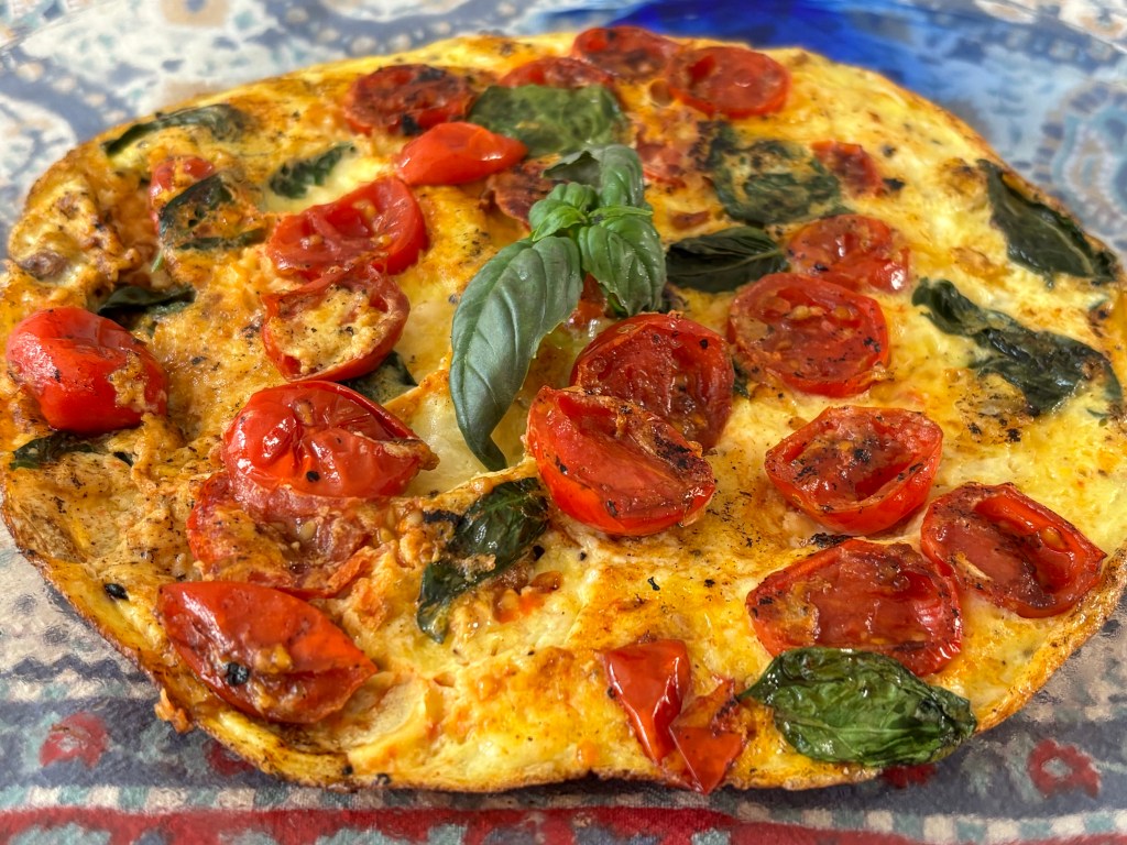 We had cherry tomatoes, fresh basil, and hard cheese on hand, so we tried this recipe: https://memoriediangelina.com/2024/08/08/frittata-al-pomodoro-tomato-frittata/.
