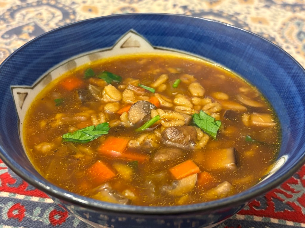 During this cold weather, we craved a hearty, vegetable-heavy soup. We tried this recipe: https://www.sipandfeast.com/mushroom-barley-soup/. This was a tasty, healthy, and satisfying meal.