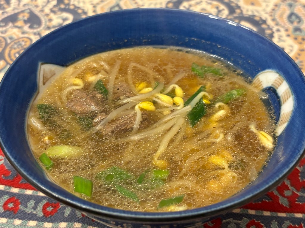 This is a soup from my childhood, and I have been craving it in recent weeks. We followed this recipe: https://www.beyondkimchee.com/beef-and-bean-sprout-soup/